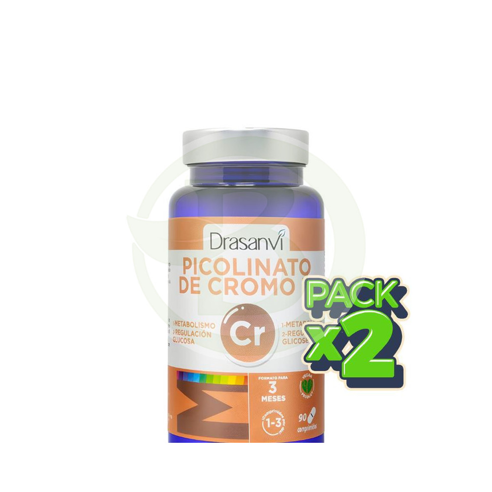 Pacote com 2 comprimidos de picolinato de cromo mineral (90 comprimidos) Drasanvi