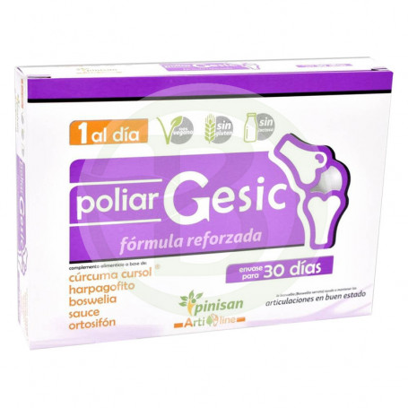 Ver maior Poliar Gesic de Pinisan é um suplemento alimentar que contém extrato de garra do diabo e extrato de cúrcuma. Ambos os extractos são conhecidos pela sua utilização como auxiliar natural ao nível das articulações, devido ao seu efeito anti-inflamatório.