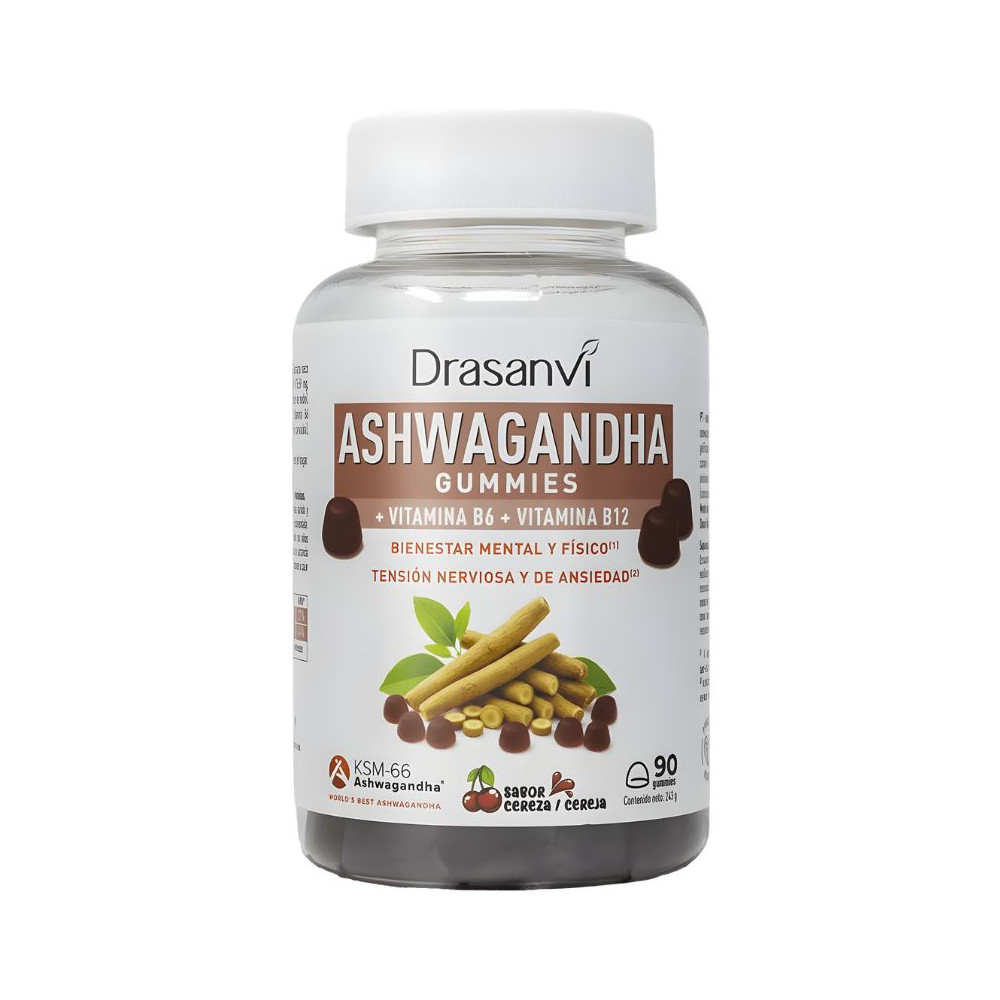 Xarope de glicose, açúcar, água, extrato seco de ashwagandha KSM-66 (raiz) (Withania somnifera, withanolides 5%), gelificante (pectinas), acidulante (ácido cítrico), regulador de acidez (citratos de sódio), corante (antocianinas), aroma natural, óleo vegetal (coco), vitamina B6 (cloridrato de piridoxina), agente de revestimento (cera de carnaúba), vitamina B12 (cianocobalamina).