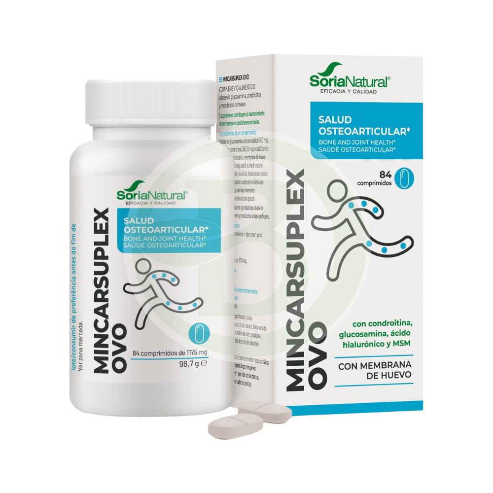 Os ingredientes de Mincarsuplex Ovo, elaborado por Soria Natural, são comumente usados para manter o funcionamento adequado dos ossos e articulações. Mincarsuplex Ovo Tem um efeito sinérgico graças aos seus ingredientes, de forma que ajuda a manter a saúde das articulações em colaboração com os efeitos benéficos de uma vida saudável.